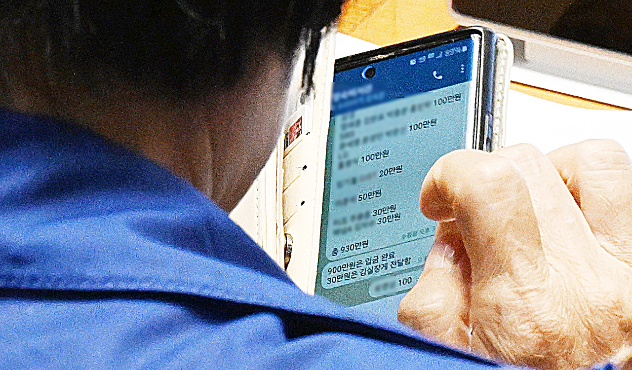 메시지 말미에는 '총 930만원'이라는 내용이 적혔고, '900만원은 입금 완료 30만원은 김실장(에)게 전달함'이란 별도의 메시지도 사진에 포착됐습니다.