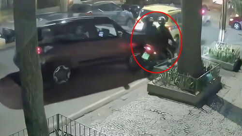 차는 강도의 오토바이를 부수고 화단 위에 올라탄 뒤에야 멈춰 섰고 강도들은 결국 차 밑에 갇힌 채 경찰이 올 때까지 기다려야 했습니다.
