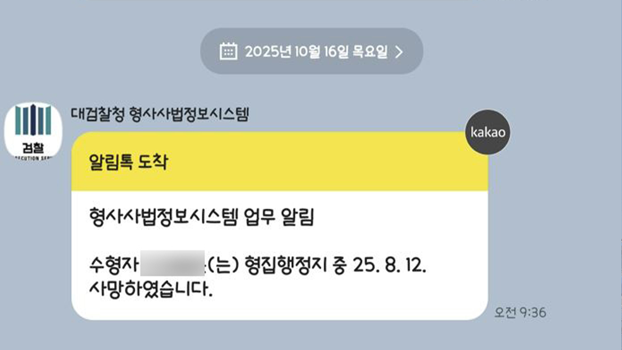 남언호 빈센트 법률사무소 변호사는 "일종의 국가 행정인데도 현재 법적으로 검찰이 가해자의 사망 사실을 언제까지 통지해야 하는지 명확히 규정돼 있지 않아 행정 일관성이 떨어진다"며 "심지어 형 집행을 마친 가해자의 경우 행정기관 간 연계 시스템이 부실해 피해자가 사망 사실을 모르는 경우도 종종 있다"고 말했습니다.