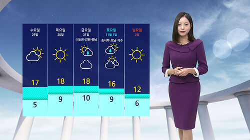 낮 기온 서울 12도, 춘천 13도로 내륙을 중심으로 일교차가 크게 벌어지겠습니다.