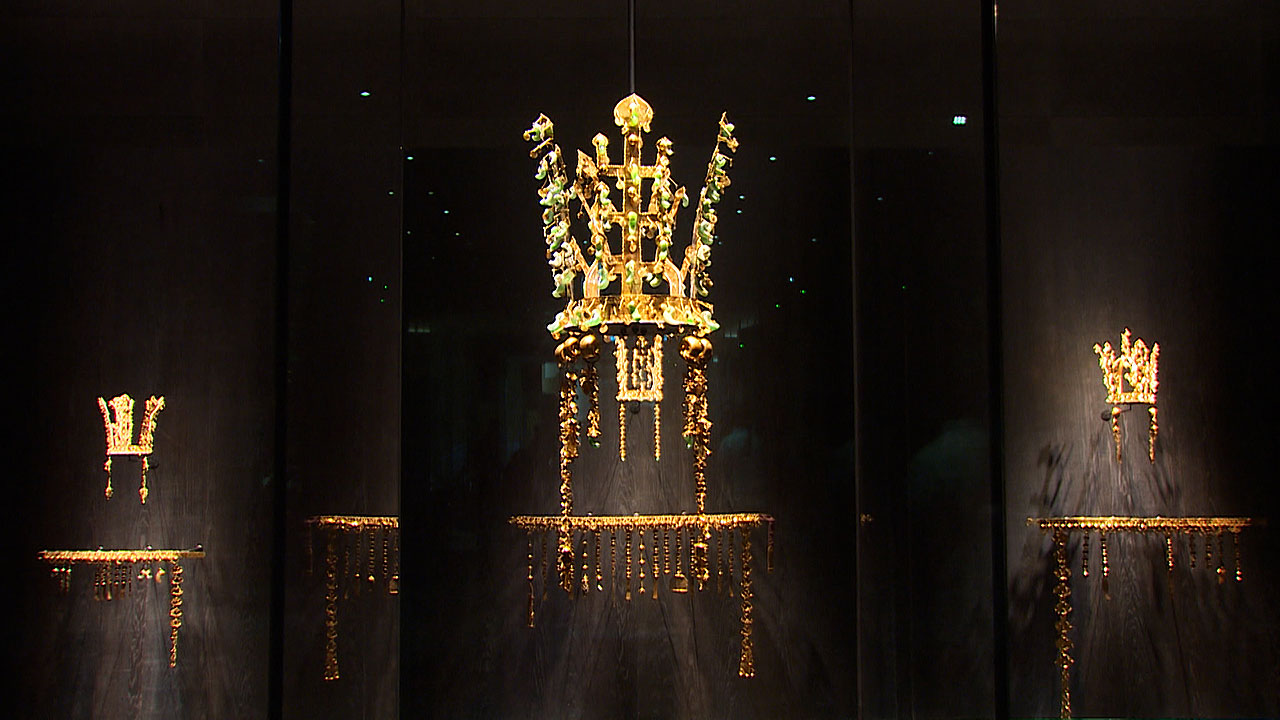 국립경주박물관은 서울과 경주, 그리고 청주에 흩어져 있던 각각 6점의 신라 금관과 금 허리띠를 한 곳에 모아 전시합니다.