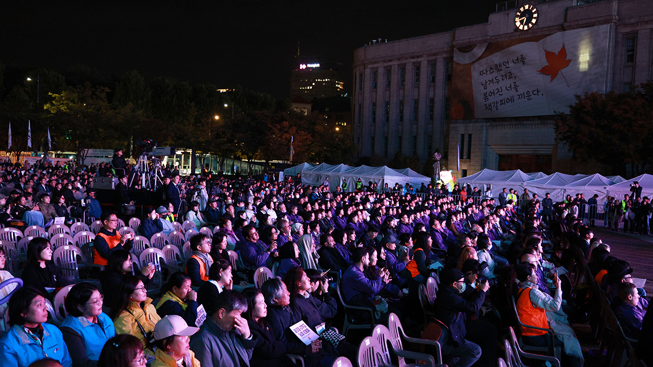▲ 25일 서울시청 광장에서 이태원 참사 3주기 시민추모대회가 열리고 있다.