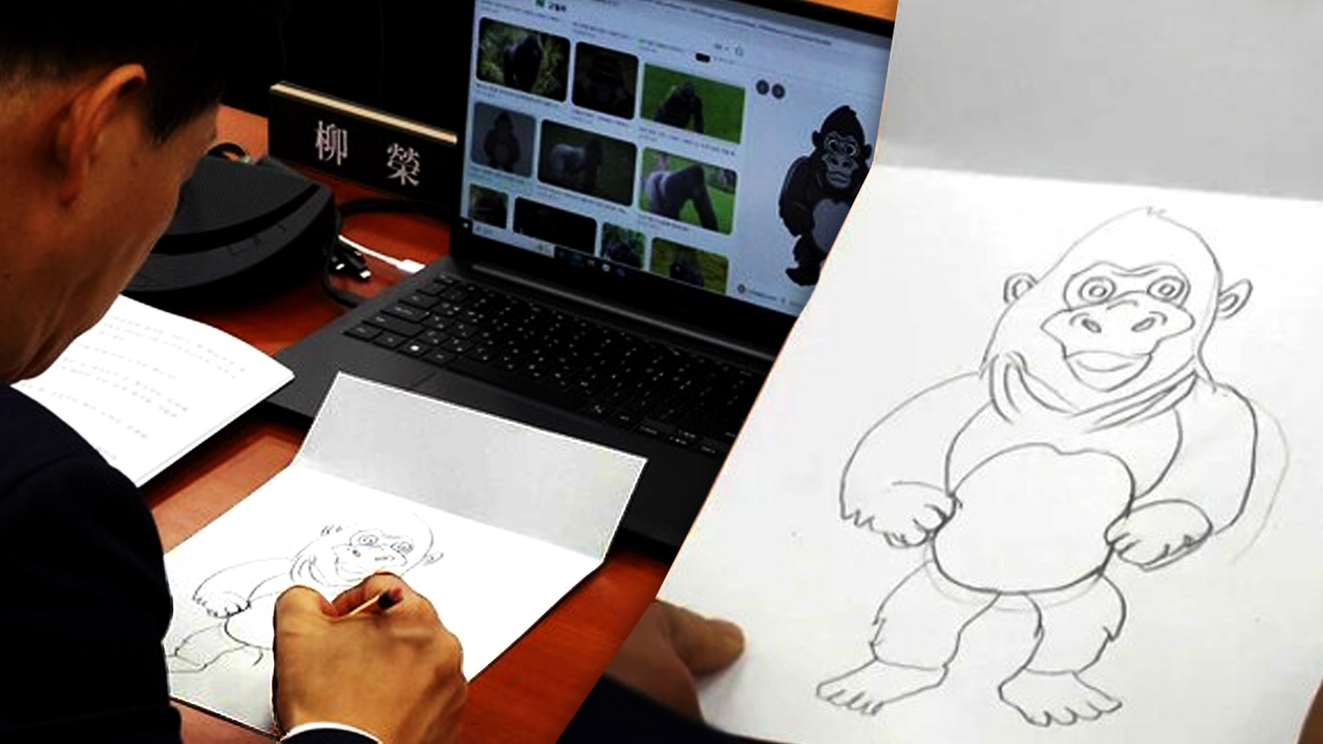 유 의원은 고릴라를 스케치한 뒤 색칠까지 한 것으로 전해졌습니다.