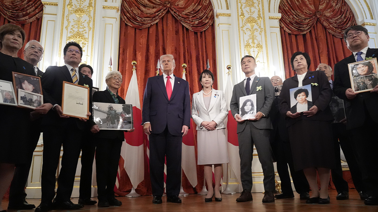 ▲ 트럼프 미국 대통령이 28일 다카이치 사나에 일본 총리와 정상회담을 한 도쿄 모토아카사카의 영빈관에서 북한에 의한 일본인 납치 피해자 가족과 면담했다.