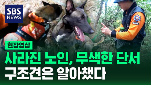 그런데, 수색을 시작한 지 약 30분이 지났을 무렵! 인명구조견 ‘대찬이’가 갑자기 한 지점을 맴돌며 짖기 시작합니다. 그곳에는 도랑에 빠진 채 ‘살려 달라’ 외치는 실종 노인이 있었습니다. 극적인 생환의 순간을 현장영상에 담았습니다.