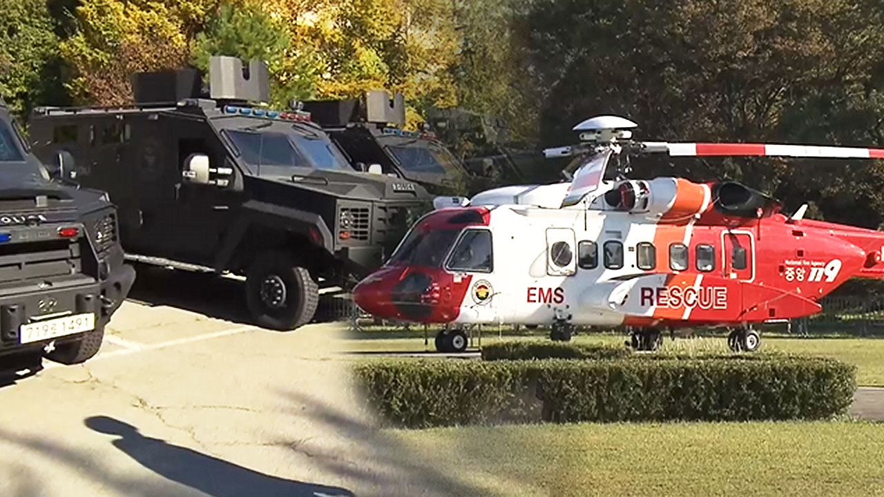 회담장 주변에 배치된 경찰특공대와 장갑차, 헬기는 출동 태세를 갖췄습니다.