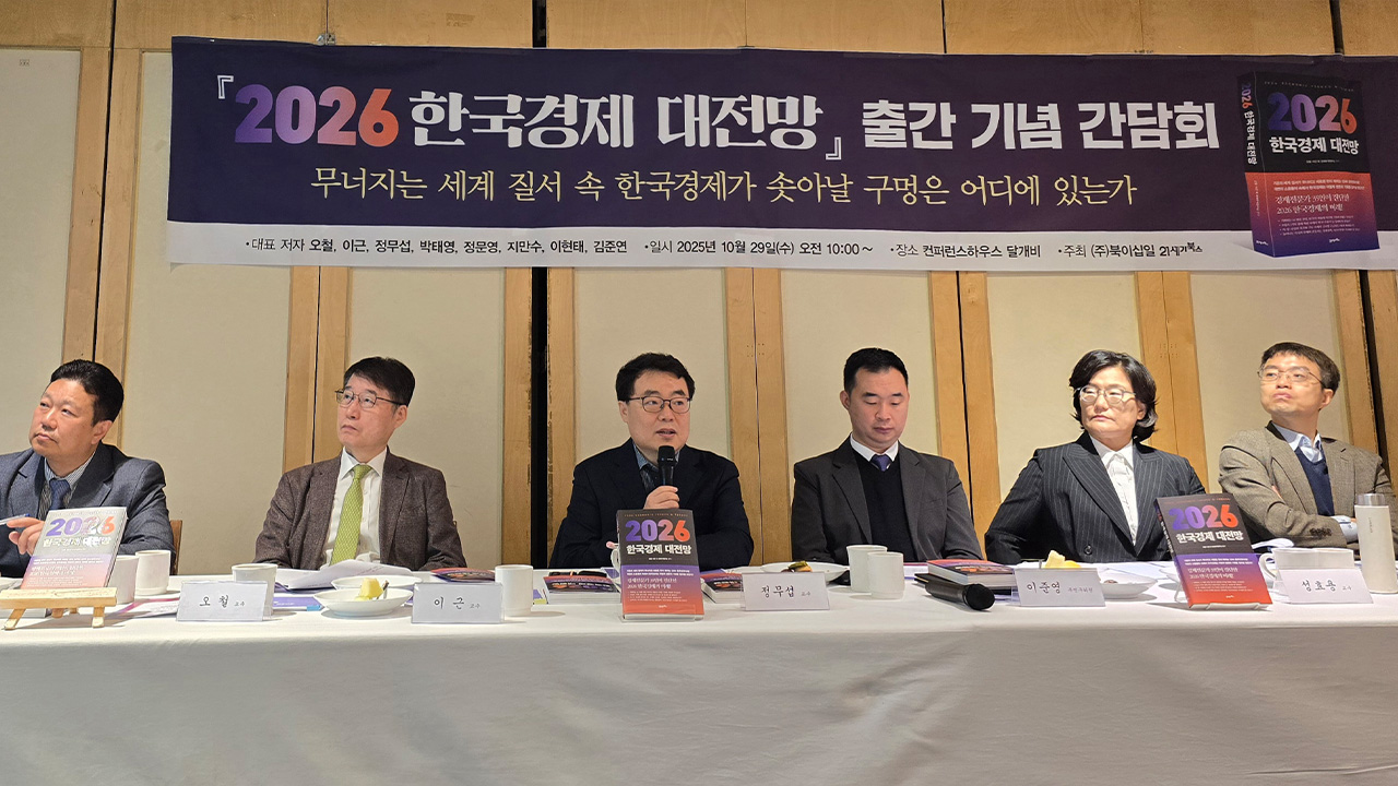 ▲ 신간 '2026 한국경제 대전망'(21세기북스) 저자들이 29일 서울 중구의 한 음식점에서 출간 기념 간담회를 하고 있다.