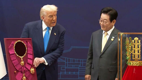 이 대통령은 트럼프 대통령에게 우리나라 최고 훈장인 '무궁화대훈장'을 수여했는데, 현직 미국 대통령에게 서훈된 건 이번이 처음입니다.