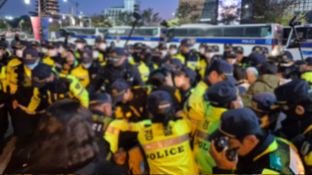 경찰은 현장에 경력 100여 명을 투입한 뒤 '허가받지 않은 집회를 하고 있으니 자진 해산 해달라'고 요청했으나, 이들이 해산할 기미를 보이지 않자 강제 해산에 나섰습니다.