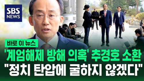 12·3 비상계엄 관련 내란·외환 의혹을 수사하는 조은석 특별검사팀이 추경호 전 국민의힘 원내대표를 소환했습니다. 특검팀은 오늘 오전 10시부터 추 전 원내대표를 내란 중요임무 종사 혐의 피의자 신분으로 불러 조사하고 있습니다. 9시 45분쯤 서울고검 청사에 도착한 추 전 원내대표는 "계엄 당일 총리, 대통령과 통화 후 의원총회 장소를 당사에서 국회로 바꾸고 의원들과 함께 국회로 이동했다"며 "만약 대통령과 공모해 표결을 방해하려 했다면 계속 당사에서 머물지 왜 국회로 의총 장소를 바꾸고 국회로 이동했겠나"라고 주장했습니다. 이어 "무도한 정치 탄압에 굴하지 않고 당당히 맞서겠다"고 말한 뒤 특검팀 사무실로 들어갔습니다. 추 전 원내대표는 지난해 비상계엄 선포 당시 윤석열 전 대통령 측 요청을 받고 의원총회 장소를 여러 차례 변경하는 방식으로 다른 의원들의 계엄 해제 표결 참여를 방해했다는 의혹을 받고 있습니다.