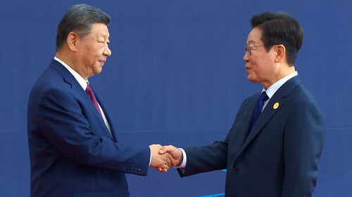경주 화백컨벤션센터에서 어제 오전 처음으로 만난 이재명 대통령과 시진핑 중국 국가주석.