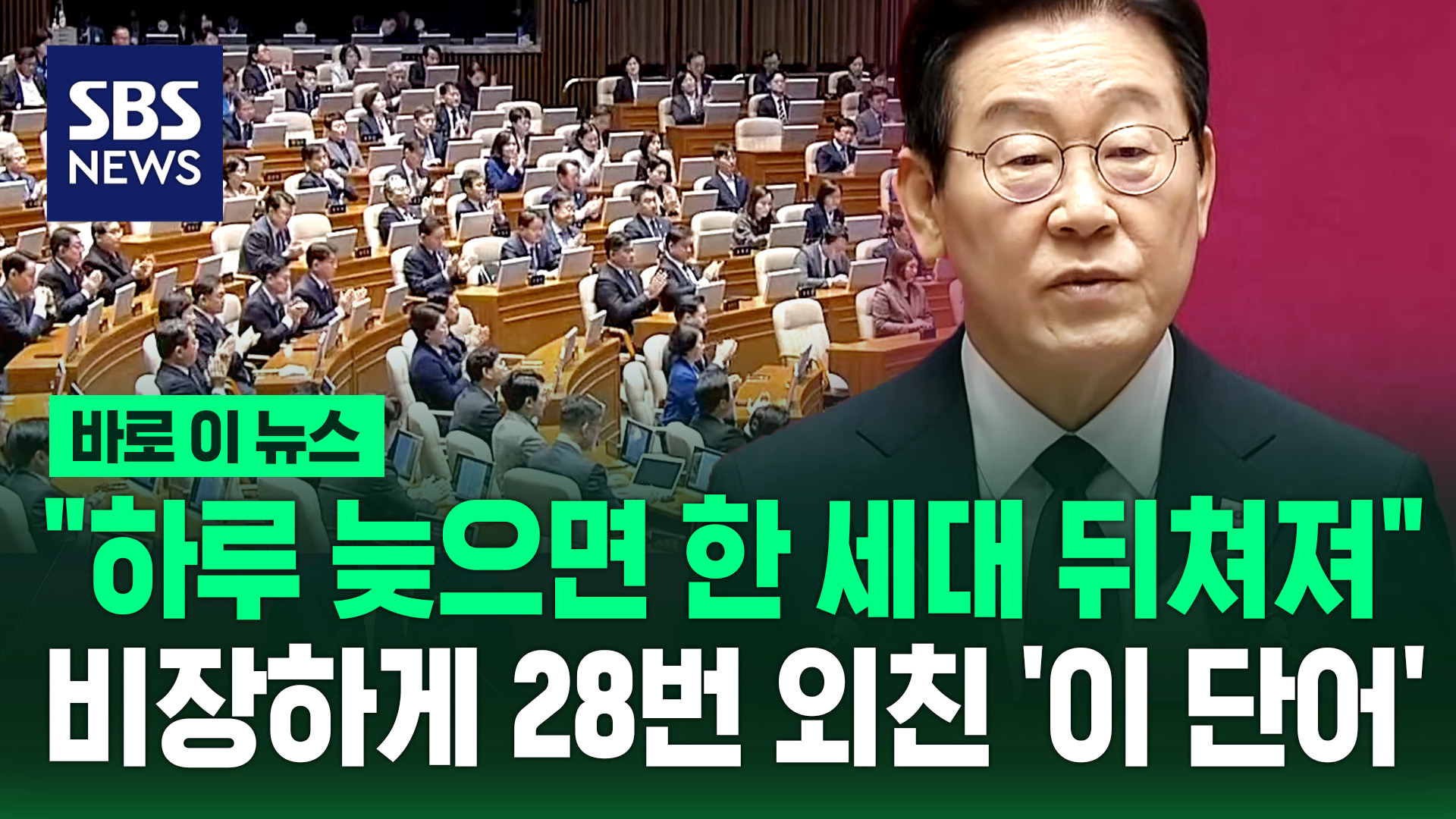 오늘(4일) 오전 국회 본회의장에서 이재명 대통령이 2026년도 예산안 시정연설을 했습니다. 윤석열 전 대통령 등에 대한 내란 수사에 반발한 국민의힘이 모두 퇴장한 가운데 이뤄진 이번 연설에서 이 대통령은 '이 단어'를 28번 언급하며 정부 역점 사업으로 키우겠다고 강조했습니다. 자세한 내용은 영상으로 전하겠습니다.