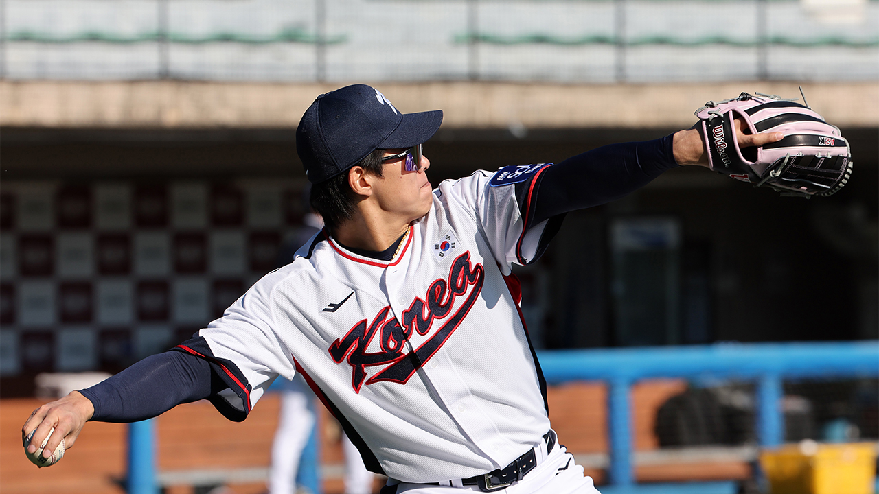 ▲ 야구 국가대표팀 송성문이 3일 경기 고양 국가대표 야구 훈련장에서 캐치볼을 하고 있다.