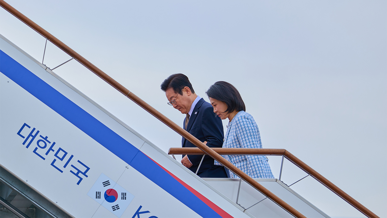 ▲ 주요 20개국(G20) 정상회의 참석을 계기로 UAE·이집트·튀르키예 등 4개국 순방에 나서는 이재명 대통령과 김혜경 여사가 17일 성남 서울공항에서 공군 1호기에 오르고 있다.