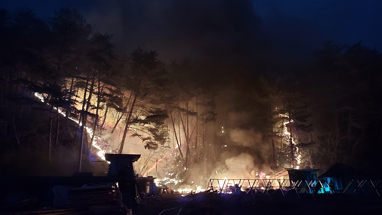 ▲ 20일 오후 강원 인제군 기린면 한 야산에서 산불이 발생해 산림·소방 당국 등이 진화 작업 중이다.