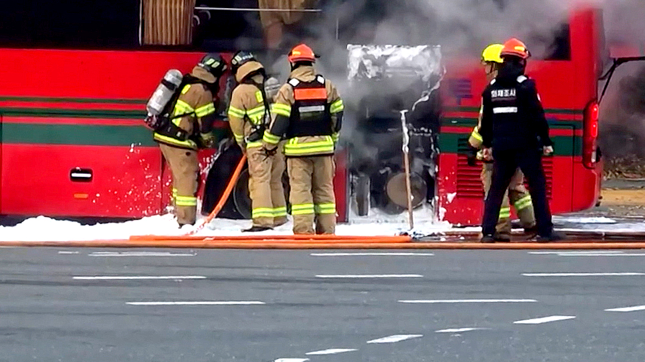 불이 난 버스는 45인승으로, 한 기업의 통근 버스로 알려졌습니다.