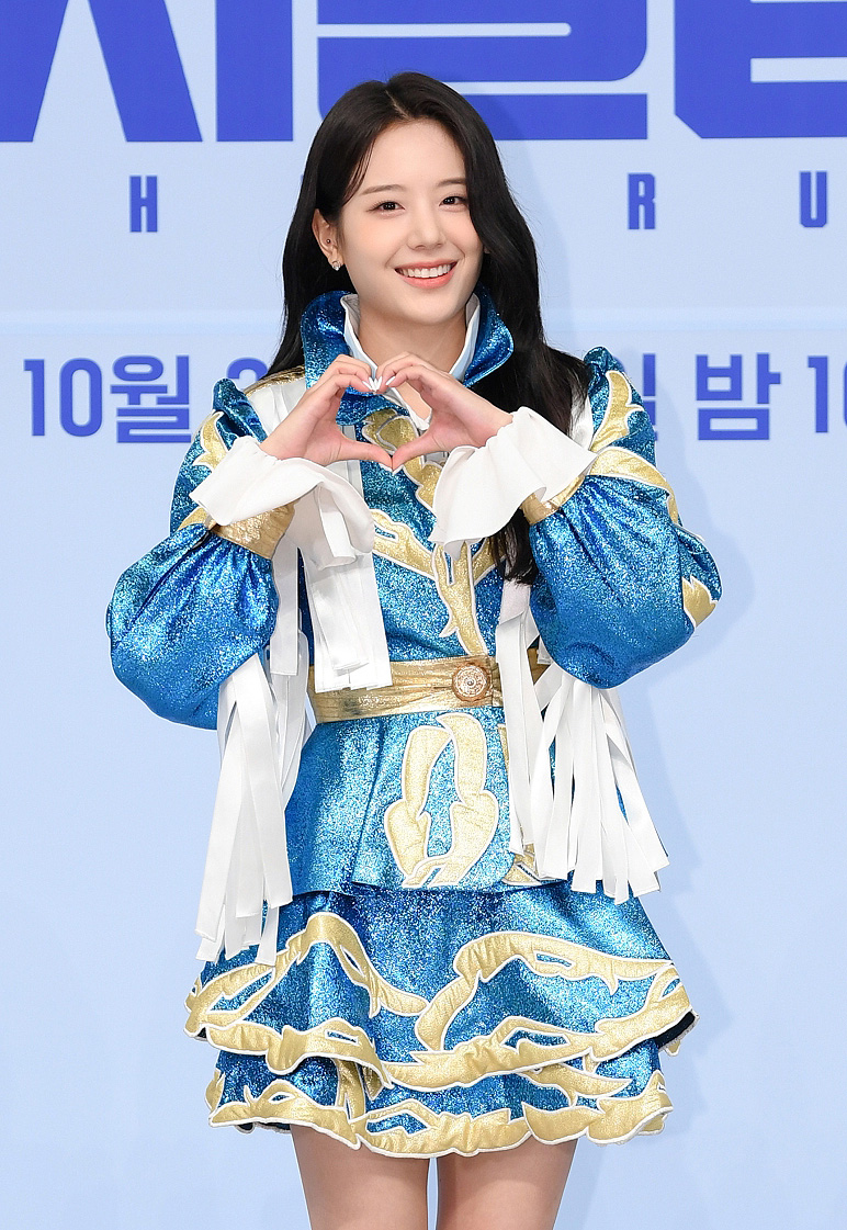 Jang Gyuri struck poses during an online press conference for SBS’s new Monday-Tuesday drama Cheer Up on Sept. 27.