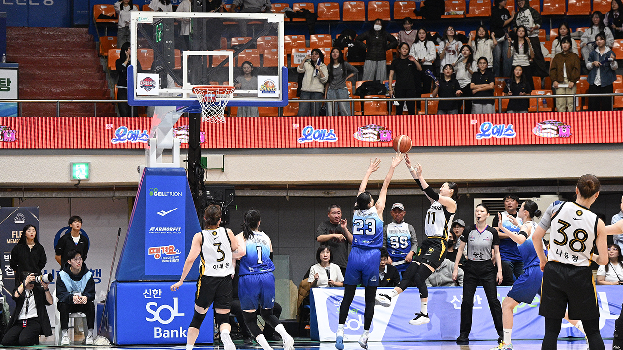 강이슬의 슛이 림을 가른 이후 심판의 요청으로 비디오 판독이 진행됐고, 득점 인정이 선언되며 그대로 경기가 끝났습니다.