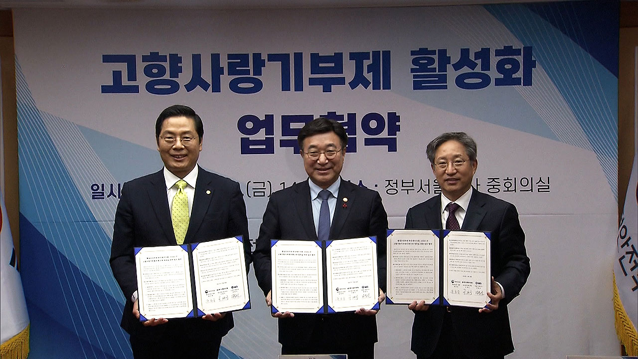 또한 "오늘 협약이 고향사랑기부제를 한 단계 더 업그레이드 시키는 계기가 될 것으로 기대한다"고 강조했습니다.