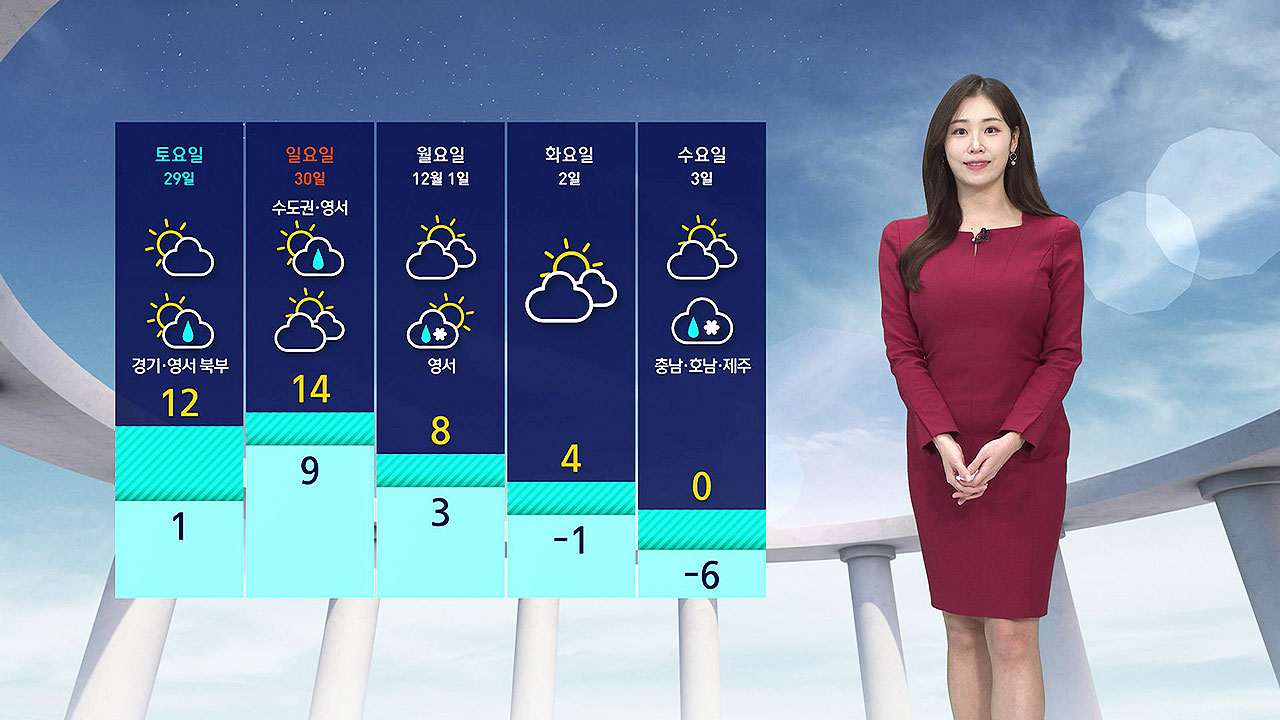 서울의 낮 최고 기온 7도, 대구 10도 예상됩니다.