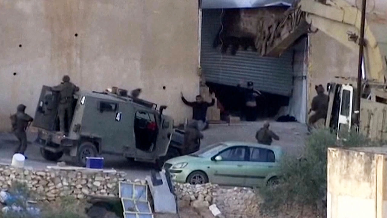 요르단강 서안 지구의 건물을 이스라엘 군인들이 포위하고 있습니다.