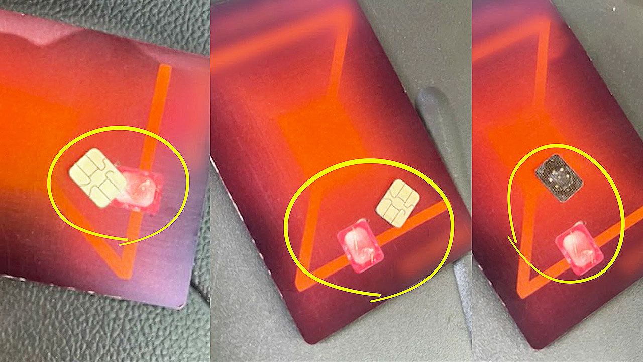 카드사 조치로 승인은 거절됐지만, 신용카드를 살펴보니 IC칩 접착 부분에 훼손 흔적이 있었습니다.
