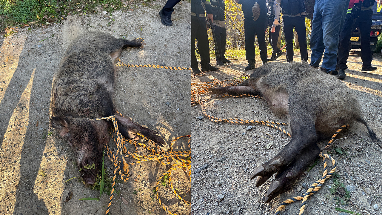멧돼지는 오후 3시 5분쯤 엽사와 경찰 등에 의해 포획됐습니다.