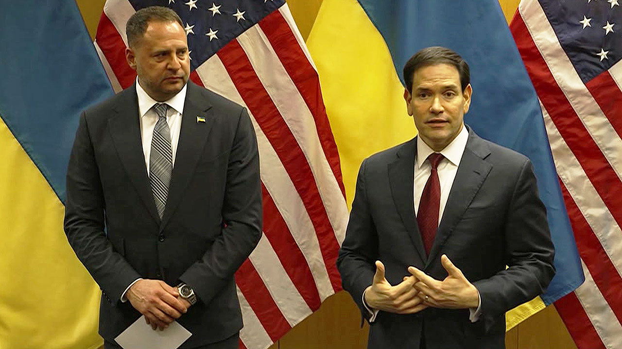 ▲ 스위스 회담 후 중간 브리핑하는 마코 루비오 미 국무장관(우)과 안드리 예르마크 우크라이나 대통령 비서실장