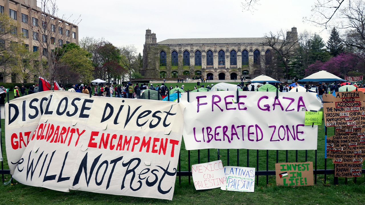 미국 주요 캠퍼스에서는 2023년 팔레스타인 가자전쟁 이후 반전 시위가 잇따랐습니다.