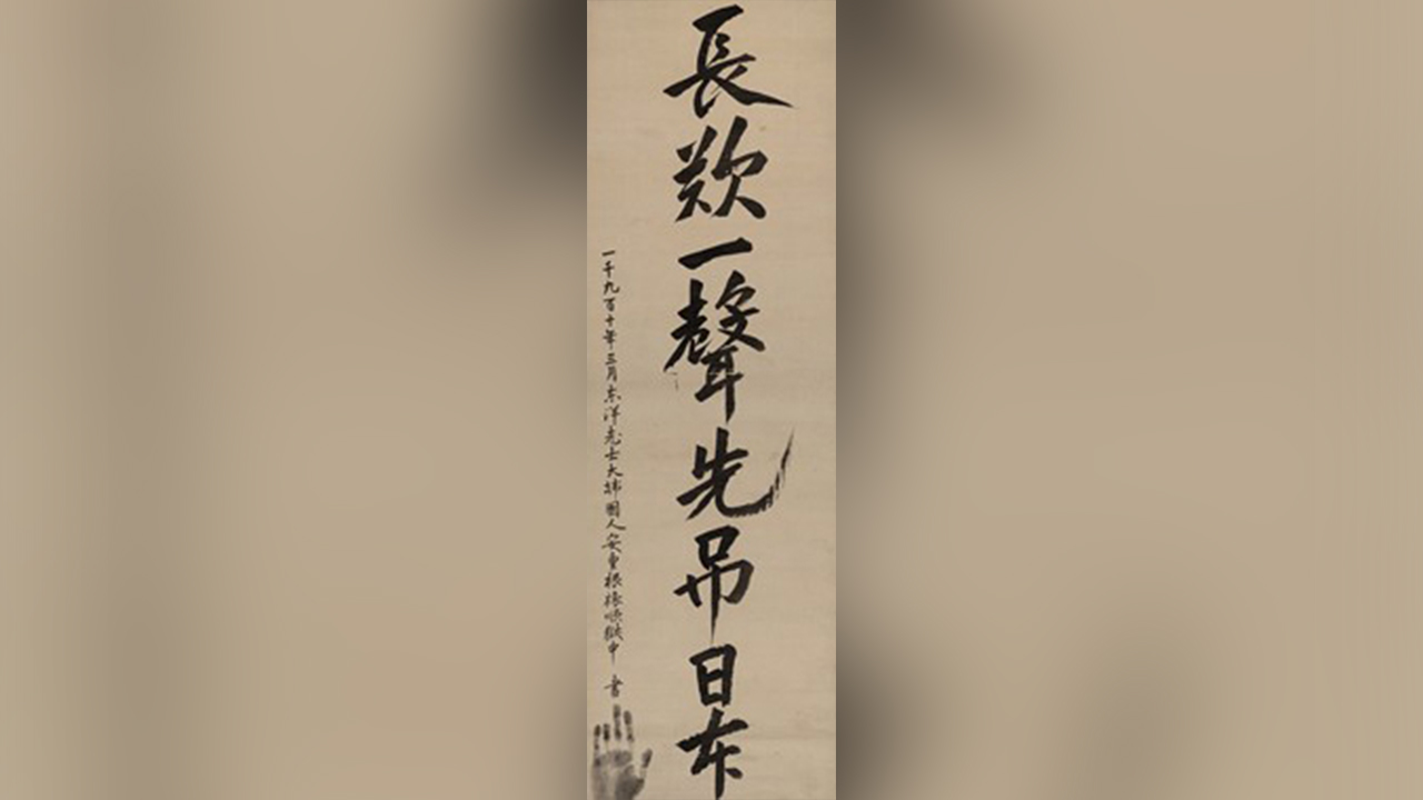 세로 135.5㎝, 가로 41.5cm 크기의 유묵은 안 의사가 여순감옥 등을 관장하던 일본제국 관동도독부 고위 관료에게 건넨 것으로 전해집니다.