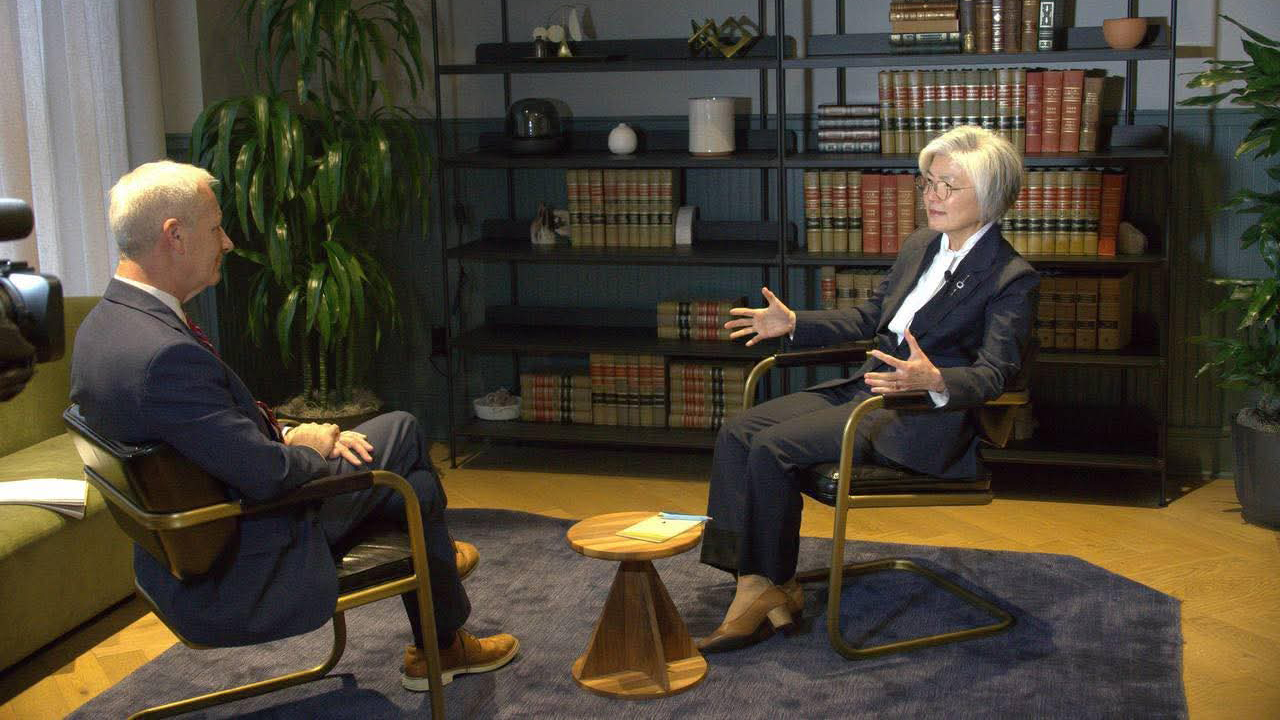 ▲ 강경화 주미대사가 1일(현지시간) 미국 조지아주 현지언론 WSB TV와 인터뷰하고 있다.