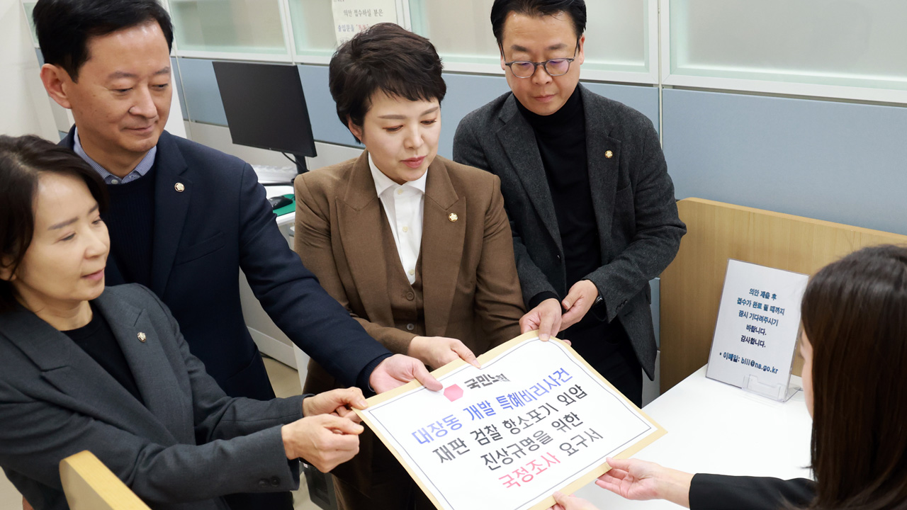 국민의힘은 오늘 대장동 재판 항소 포기에 관한 국정조사 요구서를 제출했습니다.