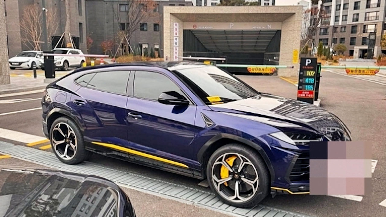 주차장 입구를 람보르기니 SUV 한 대가 막고 있습니다.