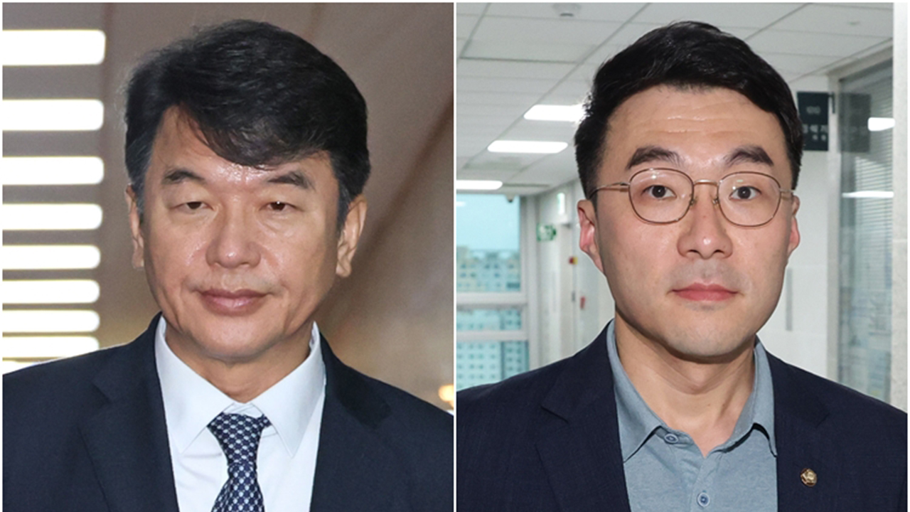 ▲ 더불어민주당 문진석 원내수석부대표(왼쪽)와 김남국 대통령실 디지털소통비서관