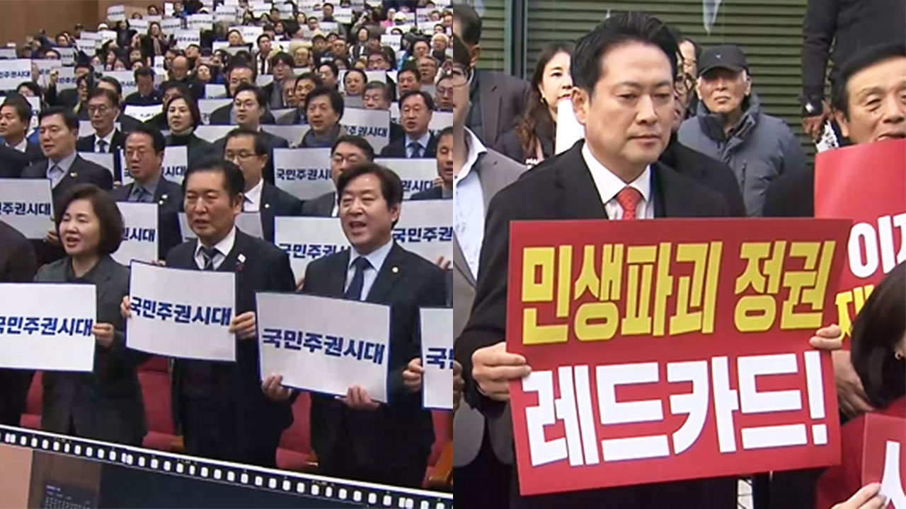[박찬범 기자 : 민주당은 계엄은 곧 내란이다. 국민의힘은 내란에 동조한 정당이다. 이런 입장이죠. 민주당 지지층들 사이에서는 국민의힘을 위헌 정당, 해산해야 한다. 이런 주장도 꽤 많이 나오고 있습니다. 정청래 민주당 대표도 오늘(3일) 내란은 현재 진행형이다, 이렇게 말했습니다. 민주당 지지층, 특히 강성 지지층들 사이에서는 윤석열 전 대통령에 대한 사법부의 1심 선고가 내란 척결이 됐다, 아니다. 이 시발점이라는 인식이 있습니다. 1심 재판부 못 미더우니 내란 전담 재판부로 가자 같은 요구가 이들에게서 분출하는 상황도 민주당이 사법부를 압박하는 입법을 밀어붙이는 한 배경으로 봐야겠습니다. 또 민주당 내부에서는 이런 내란 강공을 유지하는 게 전국 주도권을 이어가는 데도 필요한 시각이 있습니다. 반년 뒤 지방선거까지 이런 강공 모드가 이어질 수도 있는데요. 국정을 책임지는 집권 여당의 강공 일변도에 대한 중도층의 시각이 변수가 될 수도 있을 것 같습니다.]