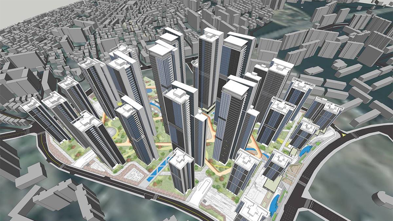 1단지는 기존 15층 1천882 가구에서 최고 49층 3천500 가구로 탈바꿈하며, 약 1만 500㎡ 규모의 근린공원을 신설할 계획입니다.