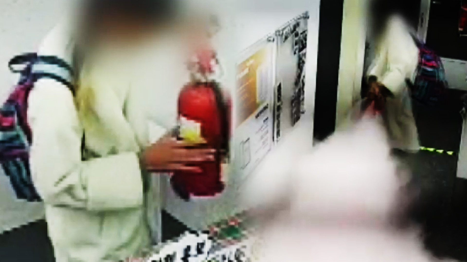 약 5분 전 CCTV에는 이 남성이 이곳저곳을 기웃거리다 갑자기 사진 부스를 향해 소화기를 난사하는 모습이 포착됐습니다.