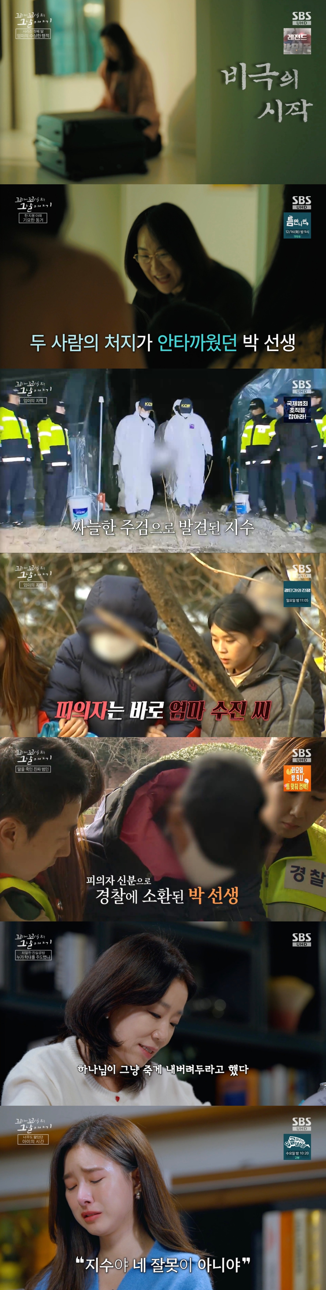 그리고 "애랑 애 엄마가 말을 안 들으니까 하나님이 그냥 죽게 내버려 두라고 했다"라는 말을 듣고 지수가 죽었구나 생각하게 됐다"라고 말했다.