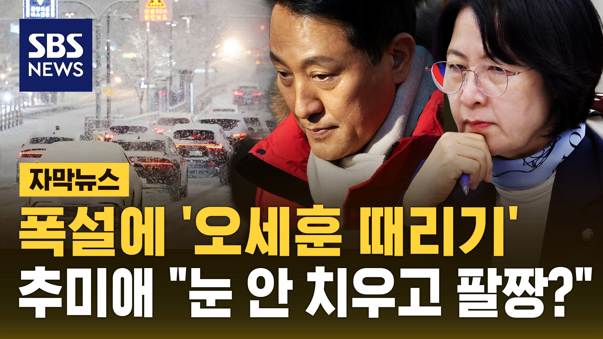 서울에 쏟아진 첫눈으로 어제(4일) 곳곳에서 극심한 교통체증이 빚어지고 사고가 잇따르는 등 '폭설 대란'이 발생한 가운데 민주당 의원들이 오세훈 서울시장의 제설 대응을 비판하고 나섰습니다.