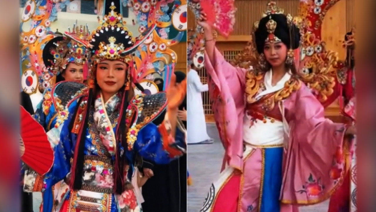 전통 무용과 퍼레이드에 나선 한국 공연단의 옷차림이 우리가 알고 있는 전통 한복과는 너무 달랐던 겁니다.