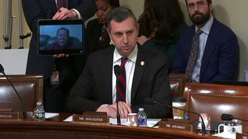 ▲ 세스 매거지너(민주·로드아일랜드) 미 연방 하원의원이 11일(현지시간) 열린 하원 국토안보위원회 청문회에서 한 남성을 한국으로 추방당한 미국 참전용사라며 화상으로 연결한 뒤 질의하고 있다.