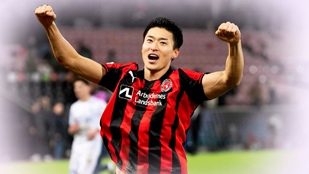 미트윌란의 조규성 선수가 헹크의 오현규 선수 앞에서 시즌 6호 골을 터뜨렸습니다.
