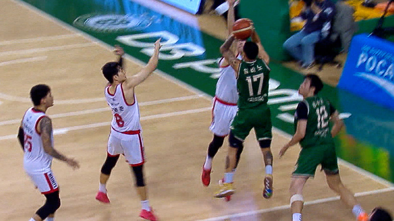 1.1초를 남기고 동료의 패스를 받은 뒤, 수비 2명을 앞에 두고 던진 3점 슛이 그대로 림을 갈랐습니다.