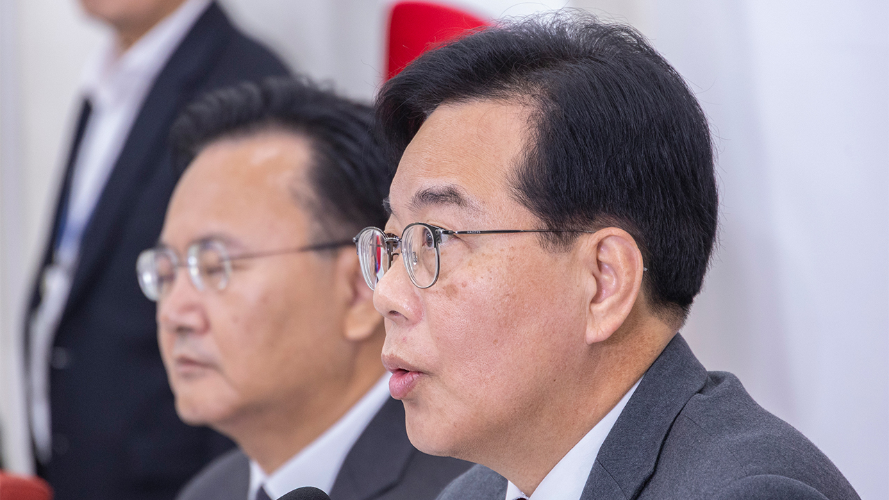 ▲ 국민의힘 송언석 원내대표가 12일 국회에서 열린 기자간담회에서 통일교 금품수수 의혹에 대한 특별검사 추진에 대해 말하고 있다.