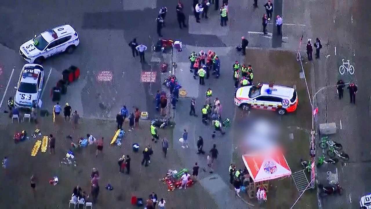 곧이어 본다이 해변에는 경찰 순찰차의 사이렌 소리가 울려 퍼졌으나 총성은 멎지 않았습니다.