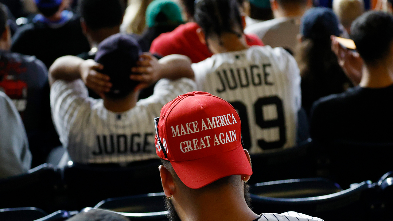 ▲ 마가(MAGA) 모자를 쓰고 뉴욕 양키스 경기를 보고 있는 미국 시민
