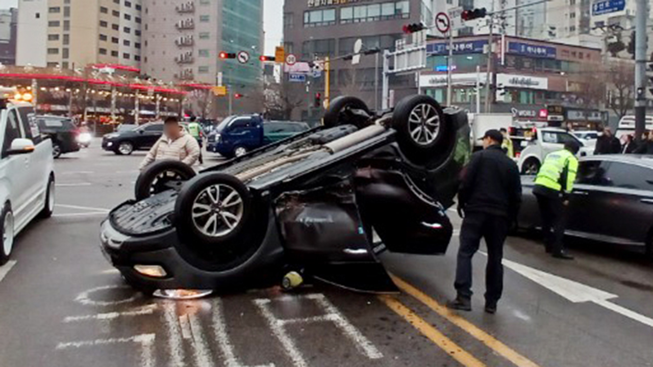 이 사고로 SUV 차량이 뒤집어지면서 운전자와 함께 타고 있던 1살 남자아이가 다쳤습니다.