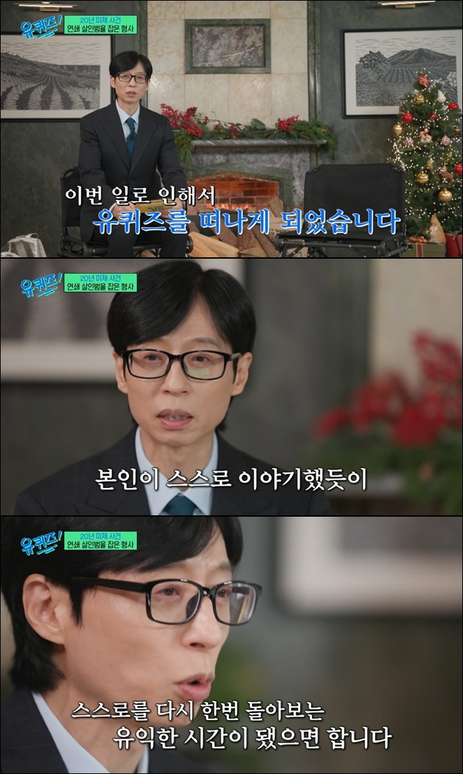 For Detective Kim Jang-soo’s segment, Yu Jae-seok ran the show solo. Before bringing the guest on, he addressed the change: “Cho Sae-ho is leaving 'You Quiz' because of what happened,” Yu told viewers. “We’ve been together a long time, and it feels bittersweet to be hosting alone today. As he himself said, I hope this becomes a meaningful time for him to reflect.”