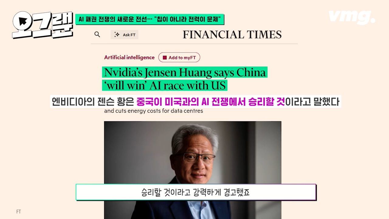 지난 11월 파이낸셜 타임스가 주최한 AI 서밋에서 젠슨 황이 한 발언이 꽤 논란이 되었습니다. 젠슨 황은 이 자리에서 중국이 AI 전쟁에서 승리할 것이라고 강력하게 경고했죠. 젠슨 황이 이런 과격한 발언을 한 배경에는 트럼프 정부가 엔비디아의 최고급 GPU를 중국에 판매하지 못하게 한 제재 조치 때문이 아니냐는 해석도 있긴 합니다.