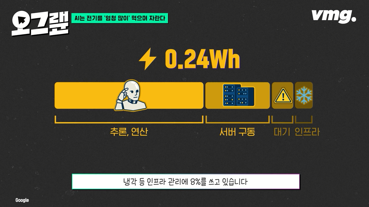 게다가 이건 구글 제미나이만 따져봤을 때이고, 점유율에서 현재 제미나이를 크게 앞서고 있는 오픈AI는 훨씬 더 많은 에너지를 쓰고 있을 겁니다. 미국에는 챗GPT와 제미나이뿐 아니라 클로드, 퍼플렉시티, 그록도 있죠. 거기에 중국의 딥시크, Qwen, Kimi 같은 다른 모델까지 확장한다면요? 아마 쉽게 상상하기 어려울 정도로 거대한 규모의 전력 소비가 있을 겁니다.